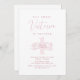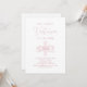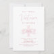 Os convites para primeiros aniversarios elegantes apresentam arco de fita desenhado à mão com fontes modernas de script manuscrito em cor-de-rosa pincelado e doce. Excelente para festa de aniversário de bebê caprichosa e divertida. Veja todas as peças correspondentes na coleção.
