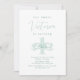 Os convites para primeiros aniversarios elegantes apresentam arco de fita desenhado manualmente com fontes modernas de script manuscrito em verde-claro, limpo e simples. Excelente para festa de aniversário de bebê caprichosa e divertida. Veja todas as peças correspondentes na coleção.