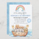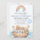 Rainbow Multicolor Ark Boys primeiro aniversario Invitation Cute Noah's Ark Boys convite para o primeiro aniversário com vários animais em uma arca de madeira, um balão azul e um arco-íris. Este doce convite de aniversário da arca de Noah é uma forma adorável de convidar convidados para a primeira festa de aniversário do seu filho. Pode ser utilizado em qualquer idade.