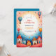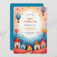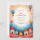 Celebre o seu aniversário com este encantador Convite de primeiro aniversario do Balão de Ar Quente. Apresentando uma vila balnear e balões coloridos de ar quente soprando num céu sonhador, esta design brincalhona traz magia de conto de fadas ao seu dia especial. Personalize todos os detalhes para se adequar à sua comemoração e crie um guardião que você vai tesourar para sempre!