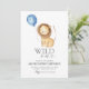 Convite para primeiro aniversario de Blocos de Balões de Cores de Água de Um Leão Selvagem Use este modelo de convite simples e moderno! Basta editar texto, baixá-lo ou impressão!