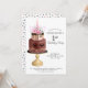 Um rosa de ouro monocromático floral monocromático e primeiro aniversario de bolo de chocolate em cor rosa e chocolate, com um fundo padrão de pontos no verso do convite. Personalizar para qualquer filho da idade.