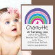 Um bonito arco-íris pastel com um coração cor-de-borboleta rosa para a sua adorável festa de aniversário da menina.