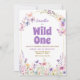 Selvagem Um Convite de festas de primeiro aniversario de flor selvagem Primeiro convite de aniversário - Selvagem Um - Primeiro convite de aniversário - Flores naturais borboletas