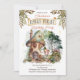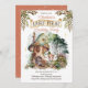 Uma doce fada de floresta fica do lado de fora de sua casa de cogumelos, entre os cogumelos, a floresta e os animais da floresta, à medida que a verde compra uma fita graciosamente de ambos os lados desta design composta do Partido primeiro aniversario da Fada Primeira, por Designs Holiday Hearts.