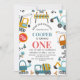 Convite para primeiro aniversario de Construção de Menino Multilcolorido Moderno Convite para o primeiro aniversário da construção de um menino Cute com vários veículos de construção em várias cores e um sinal de paragem. Esta paragem do trânsito perto do primeiro aniversário da estrada é ideal para uma construção tematizada de primeira festa de aniversário, mas pode ser usada para qualquer idade.