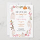 Primeiro aniversario adorável e fofo convite de festas das ilustrações do Dia das Bruxas, convite perfeito para festas de aniversário de Halloween, com ilustrações bonitinhas com pequenos fantasmas adoráveis, verde, rosa, flores laranja, abóboras brancas e laranja. Um pequeno boo é assustador! Uma festa de Halloween não assustadora.