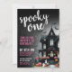 Bem-vindos a uma festa de primeiro aniversario no Halloween com este belo e divertido convite. Perfeito para comemorar uma garotinha, esta design apresenta um fundo escuro e sangrento, com fontes rosa e brancas para um olhar mais suave. Os sotaques cor-de-rosa substituem a laranja tradicional por uma torção doce, enquanto uma casa assombrada negra no fundo adiciona a quantidade certa de assustador. Fantasmas e morcegos divertidos completam o charme festivo. O fundo carregar o mesmo fundo angustiado escuro para um estilo coeso. Disponível como cartão impresso ou cartão digital descarregável, você pode enviar um e-mail ou impressão localmente. Bonita e Espantada Primeira Casa Assombrada de Halloween Pensava Convite de festas com Fantasmas, Morcegos e Estilo de Dor.