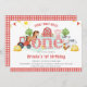 Xadrez Vermelha Branca Oink Baa Moo primeiro aniversario Convite à Fazenda de fazenda de 1º aniversário de uma garota linda com alguns animais de quintal, trator vermelho, bandeiras de beliche de celeiro vermelho e muito mais. Excelente para uma primeira festa de aniversário com tema vermelho.