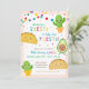 Celebre o seu aniversário de querido com estes convites de 1rua cada vez mais bonitos! Este adorável design apresenta personagens de taco, cacto e abacate. A redação diz: "Não há tempo para uma Siesta - é a primeira fiesta!