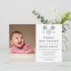 O primeiro convite de aniversário para um bebê. Possui fundo de floco de neve cinza. Modelo de foto licenciado via Pixabay sob CC0 e deve ser substituído por sua própria foto