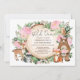 Ela está transformando um WILD ONE! Celebre o primeiro aniversario do seu pequeno com este convite de aniversário de um temido bosta de madeira. O design apresenta um grupo de animais adoráveis da floresta (urso, raposa, veado, coruja, guaxinim), flores bonito cor-de-rosa e verde-água.