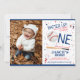 Convite Primeiro aniversario de Foto Azul Rookie Baseball