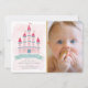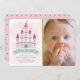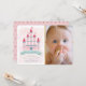 Este convite de 1rua/primeiro aniversário, giro e giro, apresenta sua foto e um castelo de cor-de-rosa sobre um fundo branco com pinceladas cor-de-rosa pincelado. O verso apresenta fundo cor-de-rosa com bolinhas douradas falsas. Personalize para suas necessidades. Perfeito para uma festa de aniversário de temas femininos como princesa, jardim, festa de chá, floral e rosa.Você pode encontrar mais produtos compatíveis na minha loja.