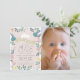 Este lindo coelho está fazendo 1rua / primeiro convite de fotos de aniversário de uma garota, apresenta um fundo cor-de-rosa pincelado com coelho branco saltando cercado por flores e verdes. O verso apresenta um fundo branco com padrões de verificação pintados à mão em rosa. Personalize-o para as suas necessidades. Você pode encontrar produtos correspondentes na minha loja.