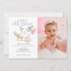 Festa de primeiro aniversario de Fotos de Um Bobo Bonito. Disponível digitalmente e impresso. Personalize facilmente o texto para seus detalhes. Um doce ganso de festa, bolo e balões gráfico estabelece a cena. Substitua a foto da amostra pela sua.