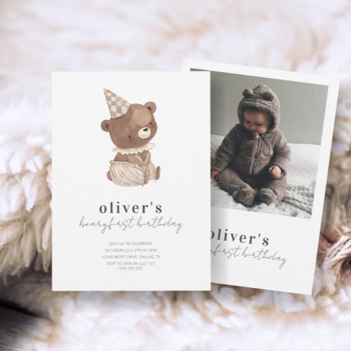 Convite para primeiro aniversario de Fotografias de Urso Moderno Bonito