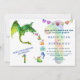 Design bonito e colorido com um dragão "assustador", pequenos monstros coloridos de desenho animado, balão 3D renderizado número 1, corações decorativos e fontes modernas. Use a ferramenta Personalizar para adicionar suas informações. Para obter itens correspondentes, visite minha Coleção Colorida de Aniversários.