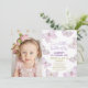 A borboleta doce recebeu o primeiro convite de aniversário da foto, apresentando várias borboletas roxas e douradas, pontos de mauve e algum texto caligráfico moderno. O primeiro convite de aniversário desta menina também apresenta um texto falho de ouro brilhante. O modelo pode ser usado por várias idades.