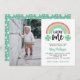 Sorte de um convite de aniversário com quatro capas verdes e um arco-íris brilhante em cores bonito. Dia de São Patrício o primeiro convite de aniversário em verde com um arco-íris bonito e quatro trevas de folhas. Um convite de aniversário verde com quatro capas de folha e o nome do seu filho em verde. Um convite de aniversário com quatro capas de folha. Sorte um convite de aniversário personalizado com uma foto do seu filho.