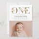 Convites de 1º aniversário de na moda e chic com elegantes letras brilhantes de ouro falso com sotaque floral de cor d'água de marfim. Personalize adicionando os detalhes da sua festa e a foto usando os campos de modelo fornecidos. O lado inverso dos convites apresenta um plano de fundo de textura falsa dourada correspondente. Certifique-se de verificar os vários tipos de papel e formas cortadas para um convite luxo extra!