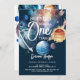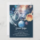 Convite para primeiro aniversario de Galáxia de Aquarela de Espaço Exterior