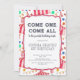 Festa de Carnaval Rosa, primeiro aniversario de Circo, Convide para subir e se preparar para uma celebração espetacular! Este convite brilhante e colorido apresenta um tema lúdico de circo, completo com um balão adorável, grandes tendas de cima e elementos carnavalescos. Esta escolha de orçamento garantirá que seus convidados ficarão impressionados e animados para participar do seu evento. Com muito espaço para personalizar os detalhes do seu partido, este convite é a forma perfeita de dar o tom para uma celebração divertida e festiva. Não perca a oportunidade de tornar o seu evento inesquecível com este delicioso convite que irá transportar os seus convidados para um mundo mágico de circo divertido!