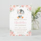 Personalize este convite de aniversário chic com os detalhes do seu partido de forma fácil e rápida, basta pressionar o botão personalizar para reorganizar e formatar o estilo e a colocação do texto. Este convite apresenta um pinguim desenhado à mão, lindas rosas cor d'água pinceladas, cor d'água pincelada, e finas folhas verdes e douradas. Excelente para qualquer idade! Itens correspondentes disponíveis no repositório! (c) O feliz Cat Studio.