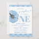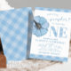 Convite para primeiro aniversario de Rapaz de Abóbora de Pumpkin Blue Gingham Preppy