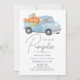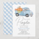 Esta bela vintage, e rustica chamada de "abóbora" de 1rua/primeiro aniversário do menino apresenta um caminhão azul cheio de abóboras e flores. O verso apresenta um fundo branco com padrões de verificação de gingham azul. Personalize para suas necessidades. Você pode encontrar mais produtos correspondentes na minha loja.