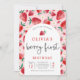 Primeiro aniversario de morango Berry Primeiro Convite de aniversário Todos os designs são © PIXEL PERFECTION PARTY LTD