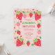 Salve a doçura de um marco com este delicioso primeiro design de aniversário de morango, com sotaques vibrantes de morango vermelho e verde que exudem encanto. Perfeito para a celebração de uma rua infantil, esta peça personalizável traz uma vibração fresca e caprichosa ao partido. Com seu adorável estilo inspirado na fruta, é ideal para uma reunião alegre. Inclui espaço para os detalhes do evento e informações de RSVP. Personalize-o para criar um tesouro para o seu bebê e convidados!
