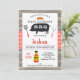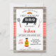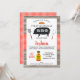 Primeiro aniversario de Porco Xadrez Vermelho Madeira Convite para CHURRASCO de CHURRASCO de Porco Feliz Aniversário com silhueta preta de porco, utensílios cozinhar, garrafa de molho e padrão de xadrez vermelha num fundo fotográfico de madeira. Este convite para CHURRASCOS pode ser usado para qualquer idade ou ocasião.