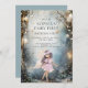 Uma fada mágica temeu o primeiro convite de aniversário para uma festa de primeiro aniversario de menina, apresentando um cenário de floresta encantado na floresta com luzes suspensas brilhantes, e uma fada em um caminho arborizado. Disponível no impressão, como um download digital para enviar em seu telefone ou em ambos.