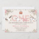 Primeiro aniversario de fazenda de Fazenda Floral rosa Convite à fazenda Feseira Física Física, Convite para o aniversário de uma menina, com vários animais de fazenda, um celeiro, grande palavra rosa e alguns adoráveis arranjos florais rosa rosa. Este convite de primeiro aniversário da fazenda é uma maneira fofa de definir a cena para a primeira festa de aniversário de uma garota temática de fazenda.