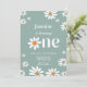 Encantadora Sage Green Retro Groovy Daisy Florals Convite ao primeiro aniversario. Coloque a palco para uma deliciosa festa de aniversário com o nosso Convite à Sage Green Retro Groovy Daisy Florals. Apresentando um cenário verde de sábio sereno e padrões de margarida retrógrada, este convite adiciona um toque de charme de vintagem à sua celebração. Personalize-o para um toque único e na moda.
