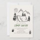 O convite de 1rua/1º aniversário deste bonitinho tema de acampamento apresenta ilustrações desenhadas à mão da tenda, montanhas, árvores e sol. O verso apresenta um fundo verde khaki com padrões de árvores. Personalize-o para as suas necessidades. Você pode encontrar produtos correspondentes na minha loja.