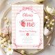 Doce Um Convite Para primeiro aniversario De Garota De Morango. Celebre o seu primeiro aniversário do Sweet One com o nosso querido Convite para primeiro aniversario da Strawberry Girl! Esta doce design mostra um morango giro vestindo um arco rosa coquetel num charmoso fundo de gingham vermelho e branco. Perfeito para a primeira festa de aniversário da sua menina. Peça agora e prepare-se para espalhar a doçura com este convite encantador e único! Acessórios correspondentes disponíveis.