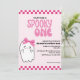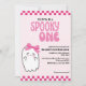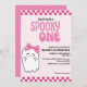 Apresentando o nosso "Spooky One Cute Ghost Retro Girl rosa Birthday Invitation" - a mistura perfeita de adorável e estranho para a sua pequena celebração de marco! Este convite apresenta um encantador personagem fantasma com arco rosa em matiz rosa, projetado para capturar o espírito caprichoso de uma primeira festa de aniversário com uma torção lúdica e assustadora