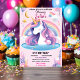 Convite primeiro aniversario de unicórnio roxo, giro, conv