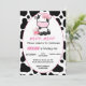 Convite primeiro aniversario de vaca cor-de-rosa floral