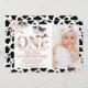 Convite primeiro aniversario de Vaca Floral de Foto rosa D