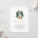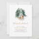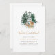 Celebre o primeiro aniversário do seu bebê com este convite de aniversário neutro em termos de gênero que inclui uma aquarela inverno ilustração temida de uma proa e de um veado em frente a uma floresta de neve.