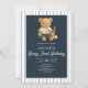 Celebre o marco do seu pequeno com o nosso convite para o Primeiro Aniversário da Beary — uma encantadora mistura de estilo clássico de pré-disquete e nostalgia lúdica. O design apresenta um adorável ursinho de pelúcia vestido com uma roupa de prequete inspirada no beisebol, capturando a mistura perfeita de doçura e encanto esportivo. O título Beary First Birthday se destaca na caligrafia retrorreflectora, trazendo um toque de talento de vintagem que sente eterno e alegre. Criado contra um fundo de listras azuis de marinho inspirado em uniformes clássicos de beisebol, este convite evoca o espírito do parque de bailes enquanto mantém um olhar elegante e polido. Perfeito para o grande dia de sua pequena estrela, este convite dá o tom para uma celebração cheia de memórias divertidas, familiares e animadoras. Personalize-o com o nome do seu filho, os detalhes do evento, e veja como ele se torna um guardião que você vai tesourar por anos — o começo perfeito para a temporada de vitória do seu bebê.