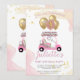 Convite Primeiro Aniversário do Carrinho de Golfe Rosa Enc