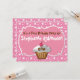 Cupcake doce e saboroso do primeiro convite de festas do primeiro aniversario. Algodão doce, cor-de-rosa e branco, com fundo de rolagem branco divertido e rico e bolo de xícara delicioso com cereja em cima! Personalize este convite de sobremesa de na moda com o seu nome e informações de festa. Pastelaria super-doce cozida com glacé branco, excelente para qualquer tipo de festa temática de cupcake.