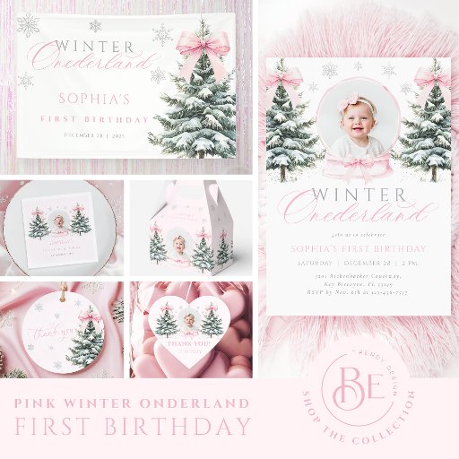 Celebre o marco especial de sua filhinha com este primeiro convite de aniversário do Winter ONEderland. Projetado com um delicado arco cor-de-rosa, flocos de neve prateados cintilantes, e tipografia elegante, ele cria a atmosfera perfeita das terras maravilhosas do inverno. Uma forma chique e festiva de convidar os entes queridos para uma celebração mágica sazonal.
