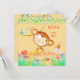 Cartões de aniversários deliciosos com personagens bonitos, cores felizes e decorações doces. Certo para a feliz festa de aniversário de uma criança de quebrar bolo e se divertir. O macaquinho se junta a um beija-flor alegre e o lugar é feito em bunting e doce garland. Pessegueiro claro com azul, rosa, verde e castanho claro. Personalize as mensagens: pássaro cantando feliz aniversário, nome de criança personalizado e aniversário de marco. Reverte para um macaquinho com informações de festa de aniversário personalizáveis.