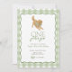 Celebre o seu "ouro ano" com este doce convite temido! Apresentando um jogador de ouros que veste um arco gingham verde e uma fronteira gingham verde correspondente, esta design é perfeita para uma primeira festa de aniversário. Personalize facilmente o nome, a data e os detalhes da parte diretamente no navegador — não é necessário nenhum software especial. Uma escolha encantadora para amantes de cachorros e celebrações de querido aniversário!