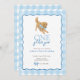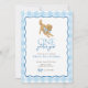 Celebre o seu "ouro ano" com este doce convite temido! Apresentando um jogador de ouros que veste um arco de gingham azul e uma borda de gingham azul correspondente, este design é perfeito para uma primeira festa de aniversário. Personalize facilmente o nome, a data e os detalhes da parte diretamente no navegador — não é necessário nenhum software especial. Uma escolha encantadora para amantes de cachorros e celebrações de querido aniversário!